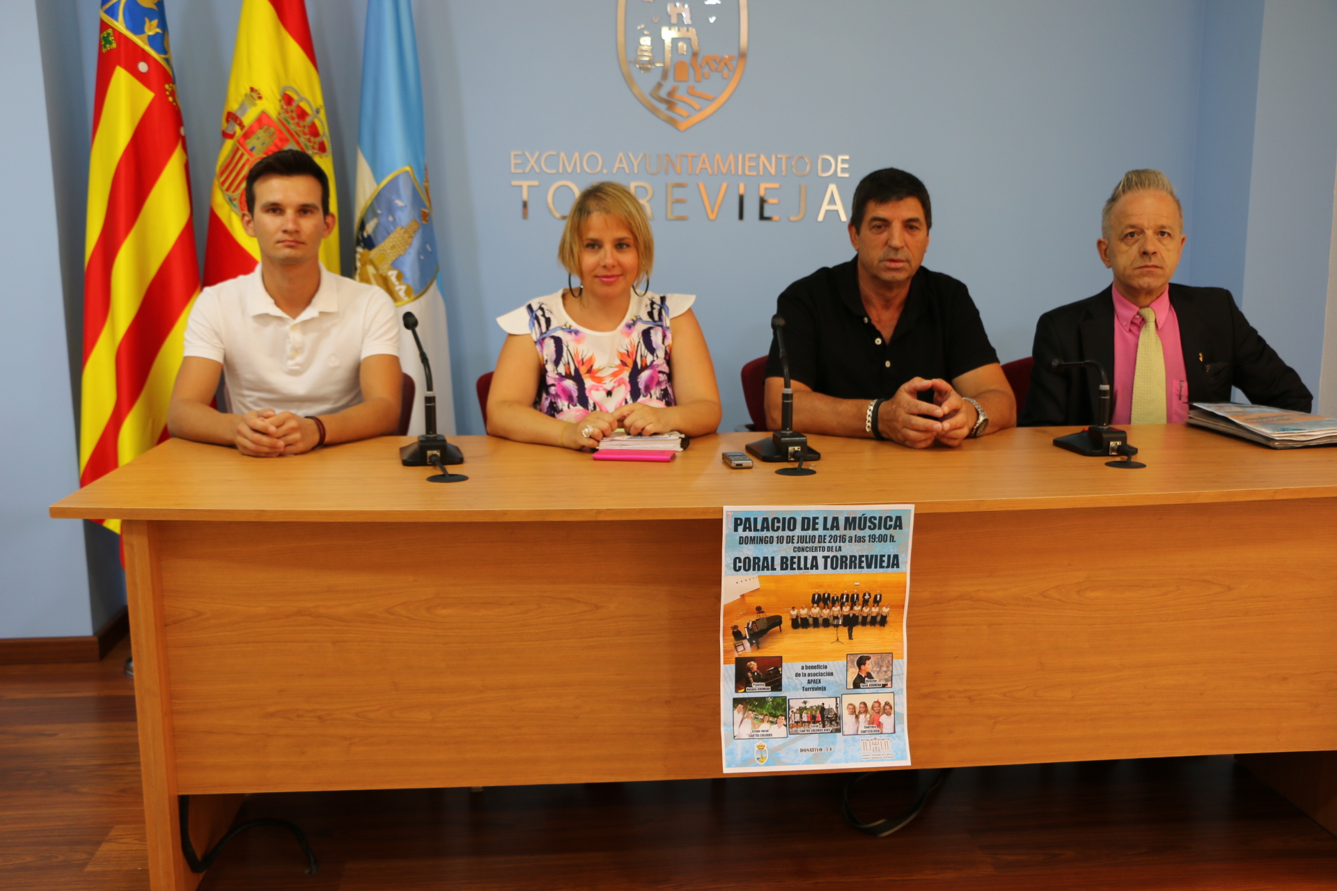 La concejal de ONG’s, que ha estado acompañada por el director de la Coral Bella Torrevieja, Tarax Khomiak, el presidente de APAEX, José Antonio Ferrández Fructuoso, y el promotor del evento solidario del sábado, Maximiliano Merinero Sáez, miembro de APAEX y de la Coral.