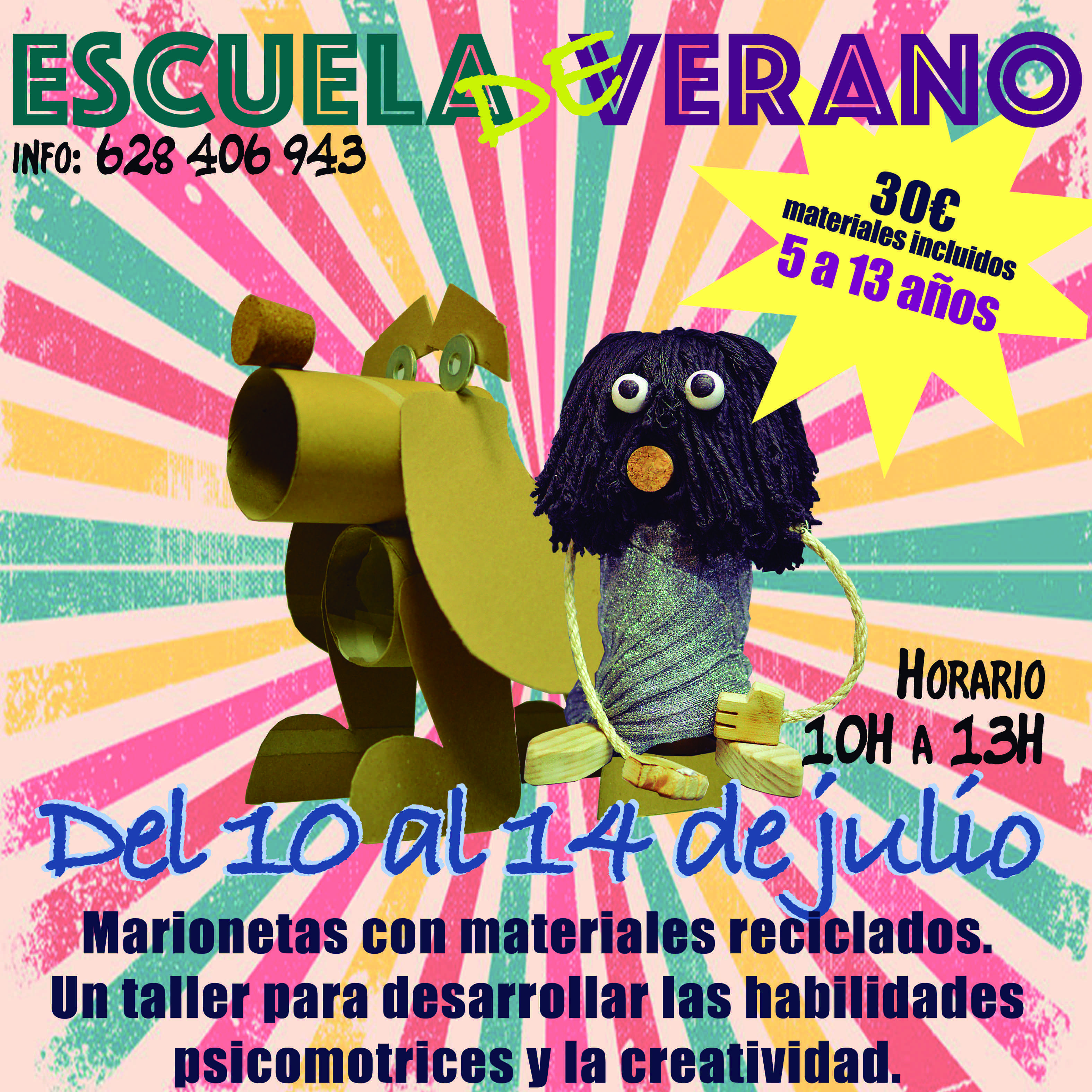 Dentro del marco de la Escuela de Verano, la semana que viene el taller estará dedicado a la creación de marionetas con materiales reciclados. Un taller para niños entre 5 y 13 años, dedicado a fomentar la creatividad y habilidades psicomotrices. Una forma de ocio alternativo con grandes beneficios para los más pequeños.