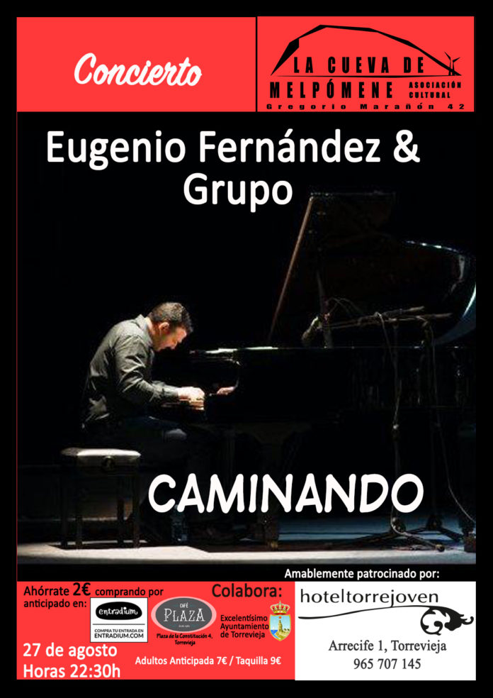 El proyecto de música instrumental dirigido por el pianista Eugenio Fernández, basado en el flamenco y flamenco-fusión, principalmente con jazz, visitará La Cueva de Melpómene el próximo 27 de agosto. Con temas originales compuestos y arreglados por Eugenio Fdez. Enfocado para todo tipo de publico con melodías pegadizas y comerciales ,sin dejar de lado las armonías modernas dirigidas al músico de conocimiento técnico, con la intención de que tanto el entendido en música como el aficionado o melómano, puedan disfrutar del concierto “caminando” juntos durante la actuación. Abierto siempre a la improvisación en cada composición, se asegura que cada concierto tenga su propio sello. “Caminando” realiza un paseo por los diversos palos del flamenco entre ellos bulerías, tangos, rumbas, etc.